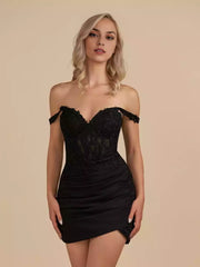 Fashionable and close fitting silhouette satin tight heart-shaped neckline lace decal tie back Homecoming Dresses