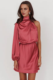 Fashionable one shoulder mini bubble sleeves, high neck, back slit, invisible back zipper, Homecoming Dresses