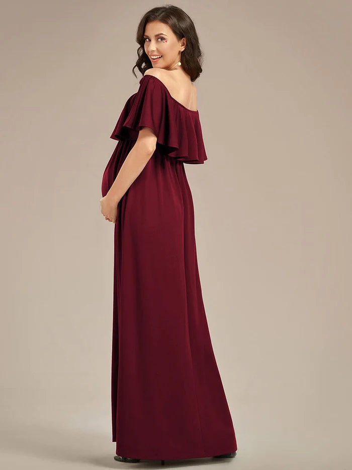 Flattering A-Line Maternity Dress with Off-Shoulder Ruffle