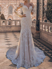 Formal Fall Wedding Dresses Mermaid / Trumpet Square Neck Sweetheart Open Back Long Sleeve Court Train Lace Bridal Gowns With Appliques Summer Wedding Party, Women‘s Clothing