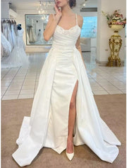 Formal Wedding Dresses Two Piece Camisole Sleeveless Court Train Satin Bridal Gowns With Ruched Split Front