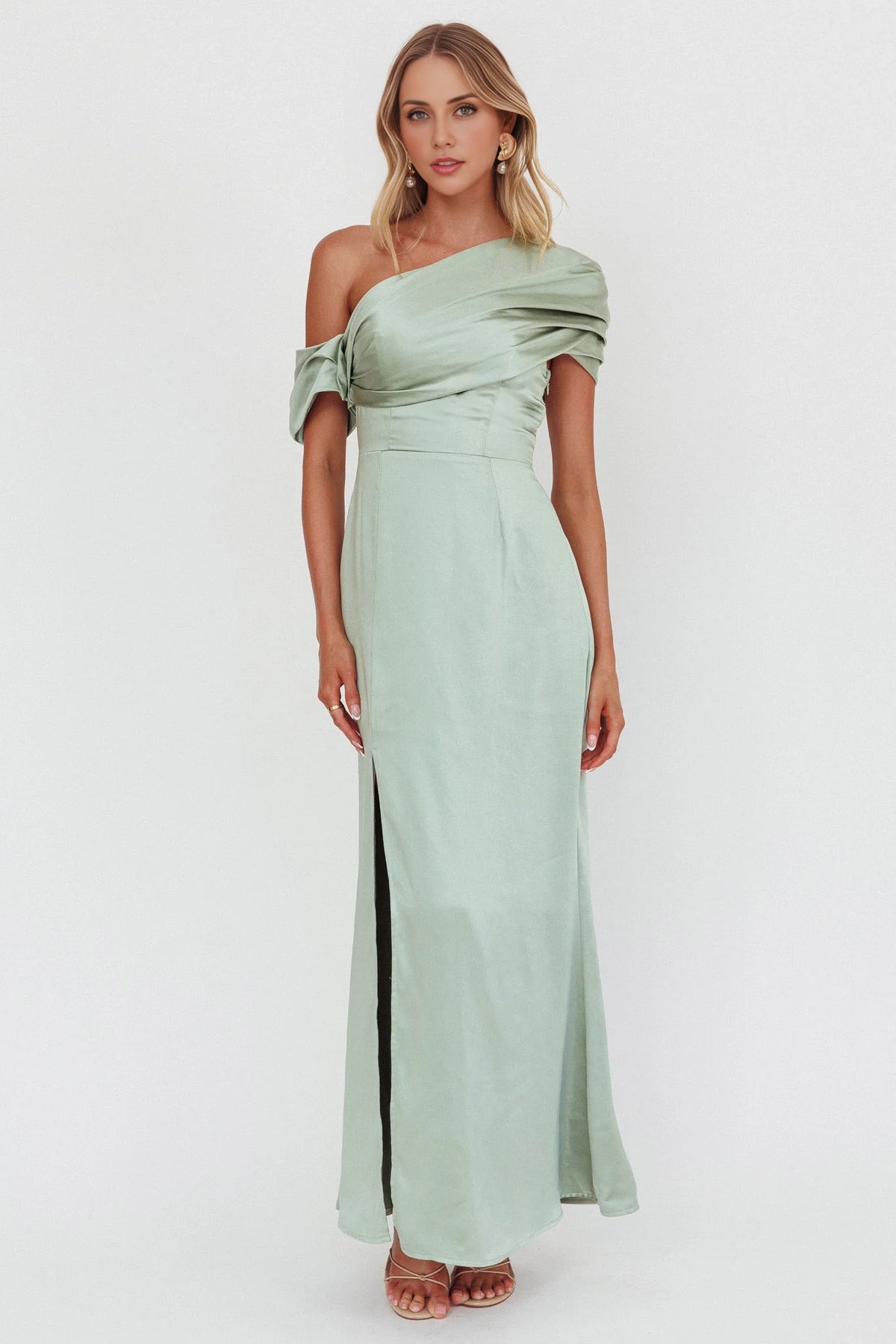 Gorgeous asymmetrical shoulder design with pleated side zipper and side slit Homecoming Dresses