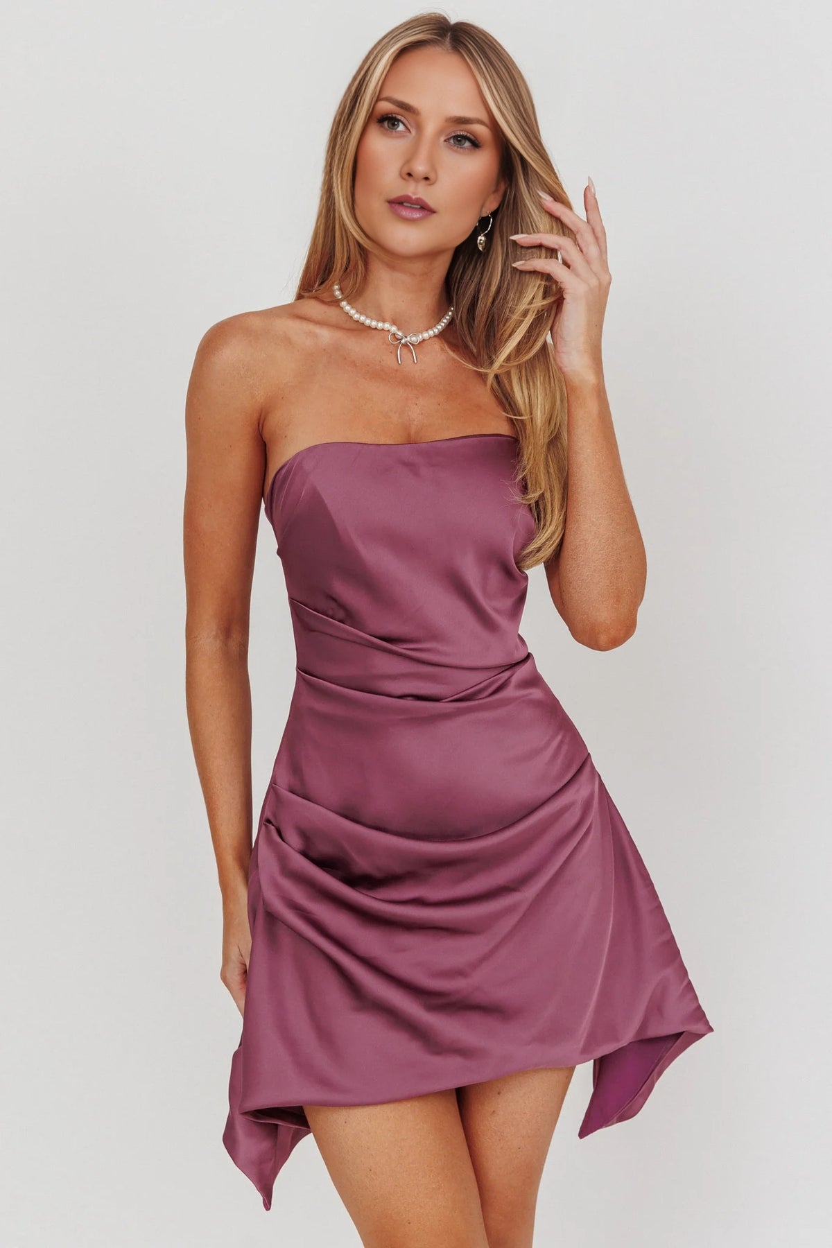 Gorgeous satin mini strapless fully lined back with zipper Homecoming Dresses