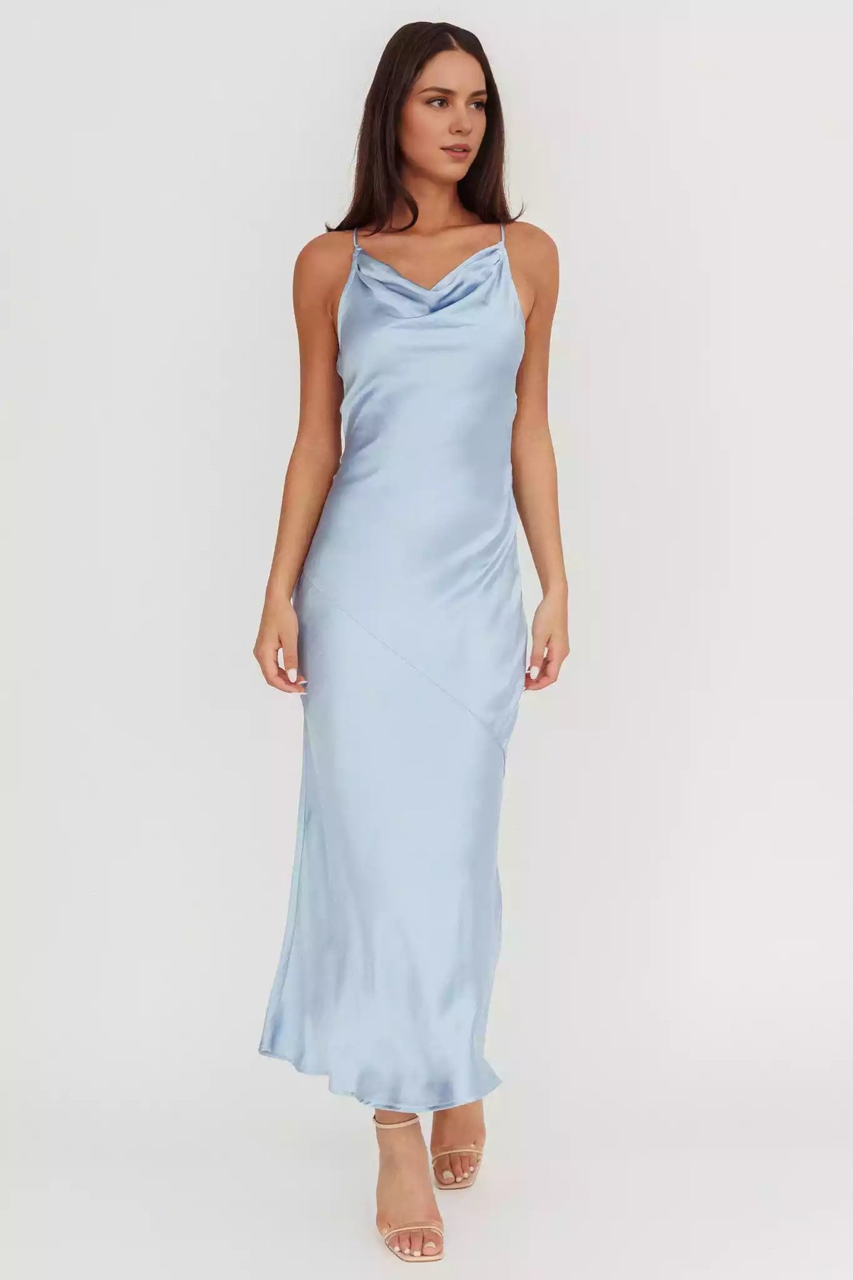 Gorgeous satin ultra long unlined scarf collar, side zipper, hollowed out mesh back Prom Dresses