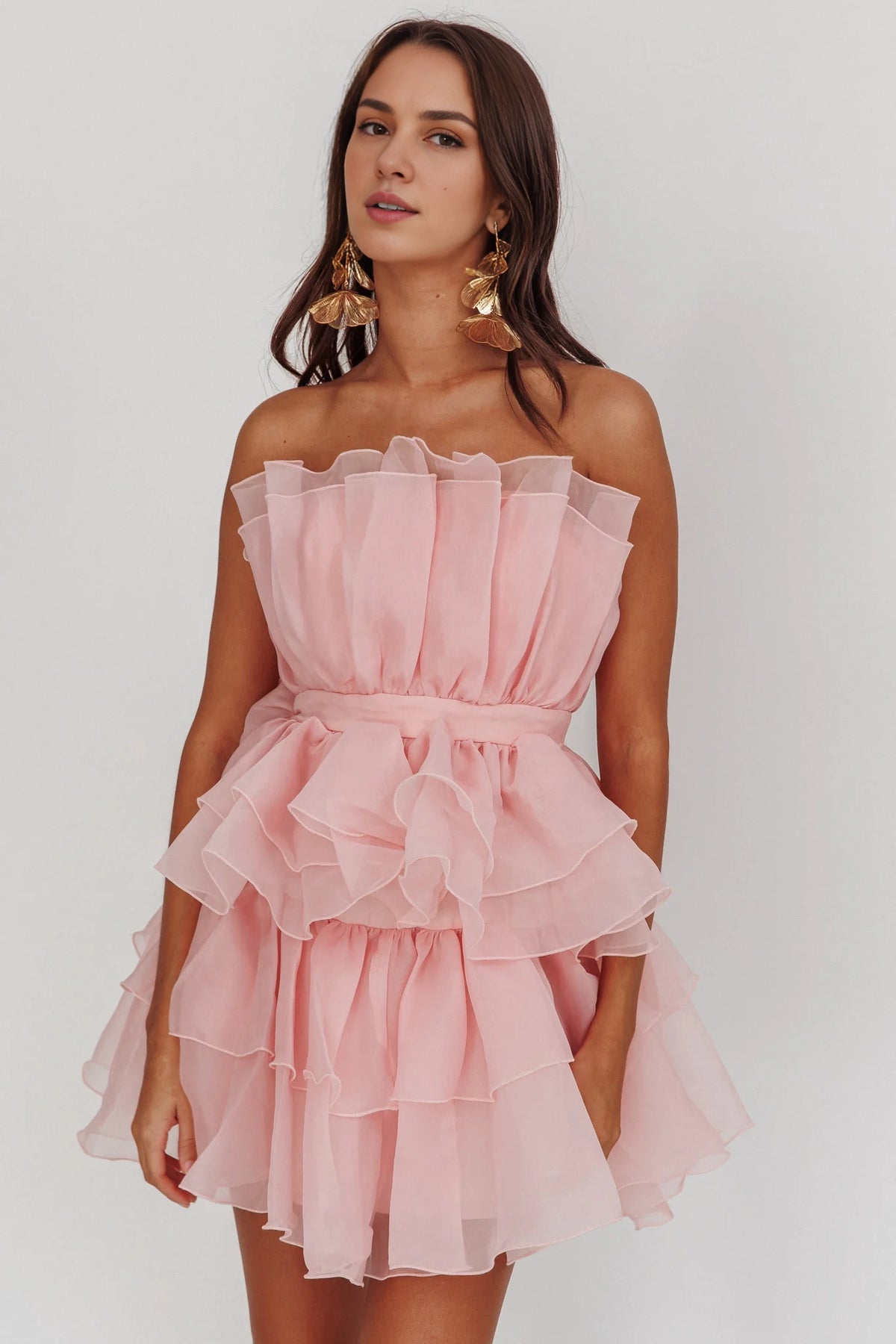 Gorgeous strapless mini ruffled organza layered invisible side zipper Homecoming Dresses
