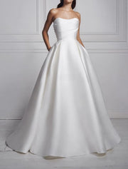 Hall Casual Wedding Dresses A-Line Sweetheart Strapless Sweep / Brush Train Satin Bridal Gowns With - US 2 / UK 6 / EU 32