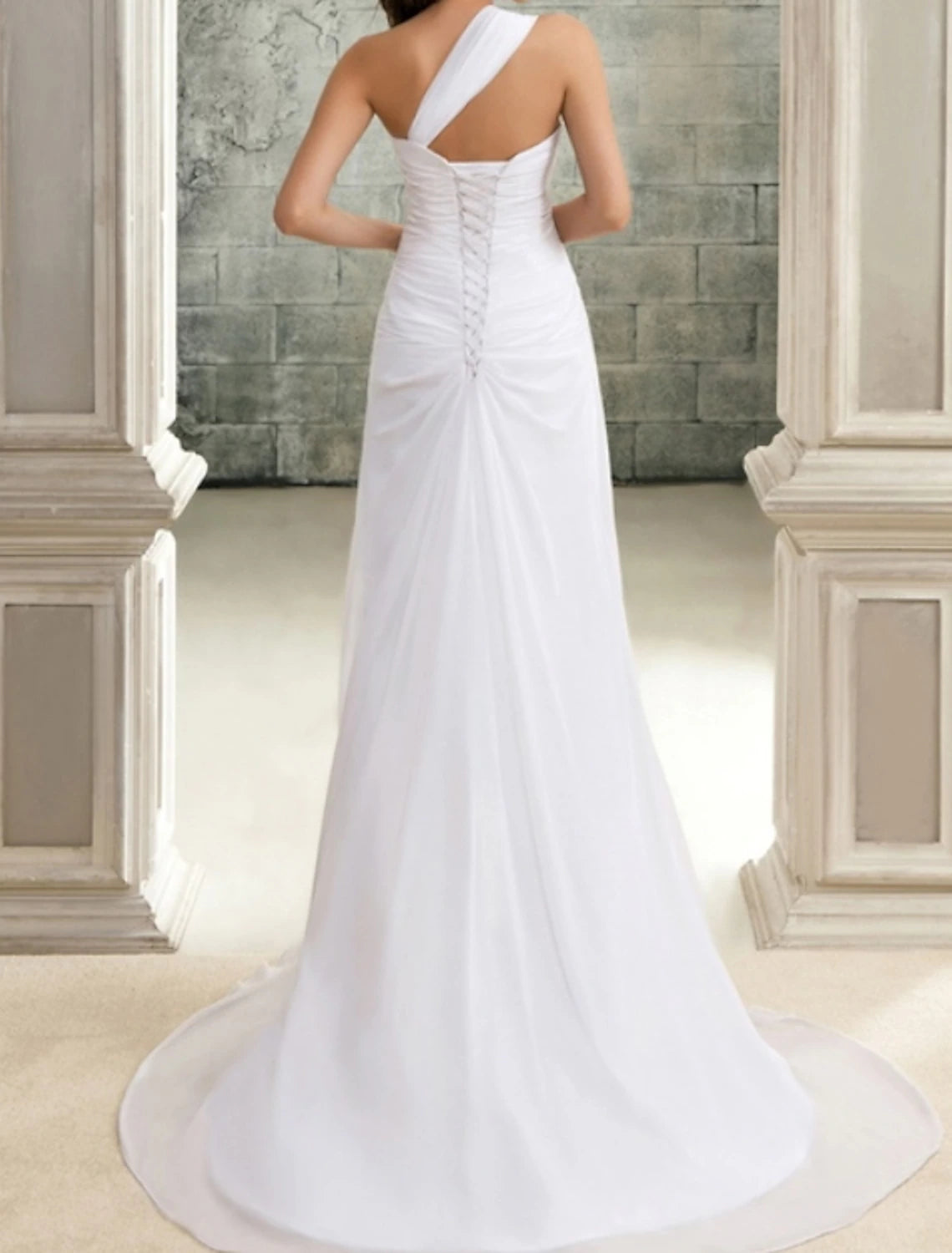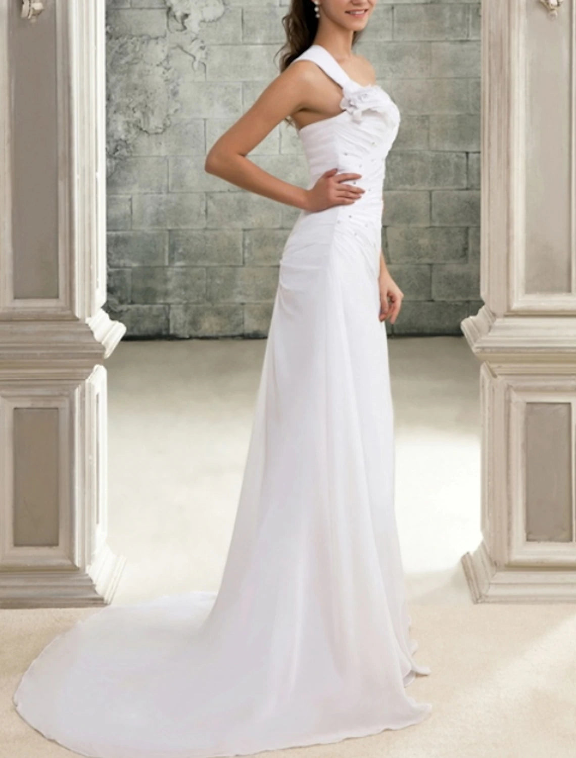 Hall Casual Wedding Dresses Mermaid / Trumpet One Shoulder Sleeveless Sweep / Brush Train Chiffon Bridal Gowns With Appliques