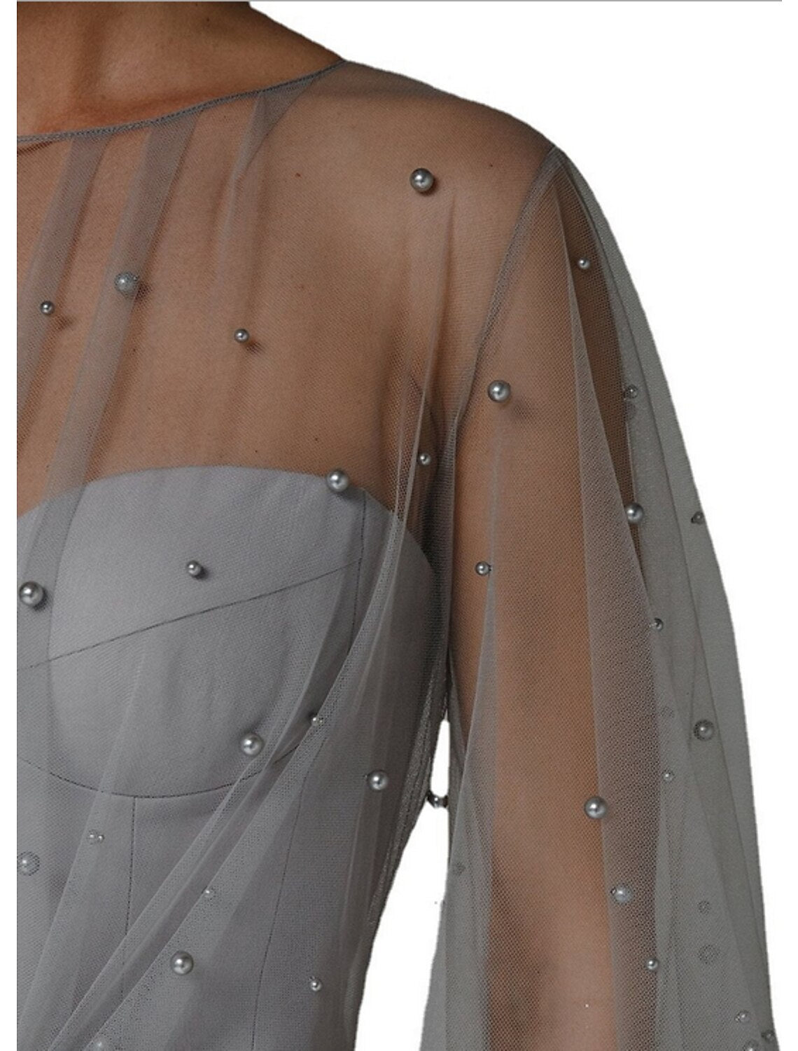 Hall Casual Wedding Dresses Sheath / Column Sweetheart Long Sleeve Floor Length Tulle Bridal Gowns With Pearls Beading