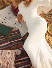 Hall Open Back Casual Wedding Dresses Mermaid / Trumpet Off Shoulder Long Sleeve Chapel Train Satin Bridal Gowns With Buttons Solid Color - US 2 / UK 6 / EU 32
