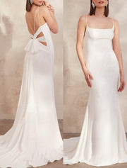 Hall Open Back Casual Wedding Dresses Mermaid / Trumpet Square Neck Camisole Spaghetti Strap Court Train Stretch Fabric Bridal Gowns With Solid Color - US 2 / UK 6 / EU 32
