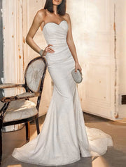 Hall Sparkle & Shine Casual Wedding Dresses Mermaid / Trumpet Sweetheart Strapless Court Train Sequined Bridal Gowns With Ruched Solid Color