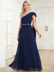 Chiffon One Shoulder Asymmetrical Embellished Waist Multiway Evening Dress