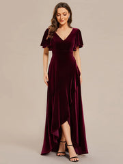 Elegant Double V-Neck Short Sleeves Velvet Evening Dress