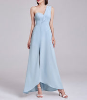 Light Blue One Shoulder Sweetheart Neckline Asymmetrical Long Prom Dress