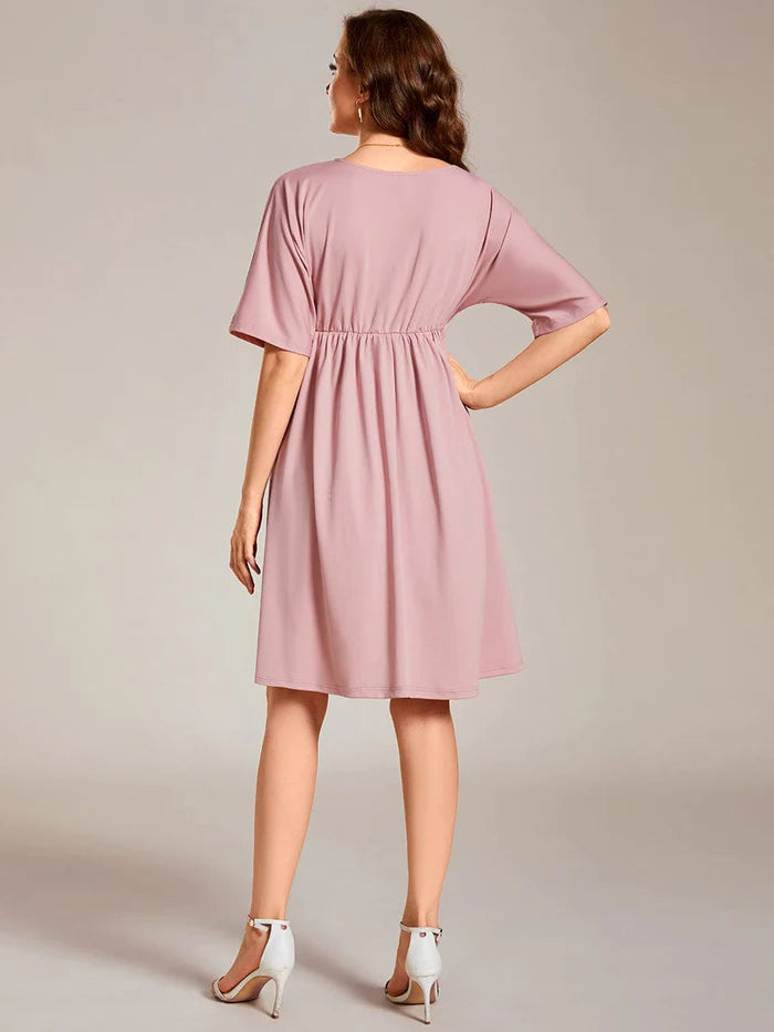 Loose V-Neck Half Sleeve Knee Length Maternity Dress