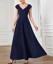 Navy Blue Deep V Neck Floor Length A Line Sleeveless Wholesale Prom Dresses