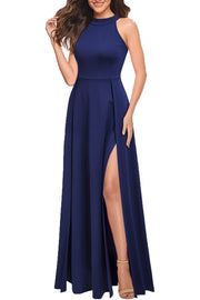 Navy Blue Women's Halter Neck Sexy Split Cocktail Party Maxi Long Formal Prom Dress