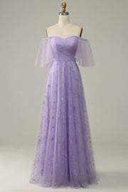 Off Shoulder Lavender Prom Dress with Ruffles