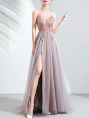 pink dress bride wedding toast dress dinner annual meeting sling light yarn catwalk high slit wedding evening dress