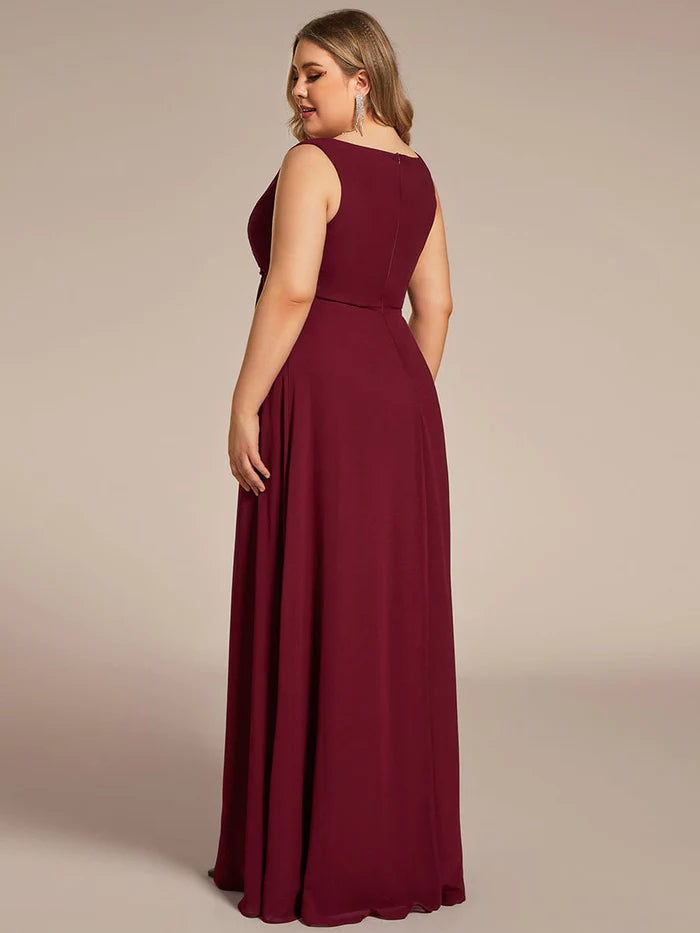 Plus Size Floral Applique Sleeveless Chiffon Formal Evening Dress - Burgundy