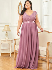 Plus Size Lace Short Sleeve Floor Length Mother of the Bride Dress