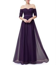 Purple Off The Shoulder Half Sleeves A-Line Chiffon Formal Prom Dress