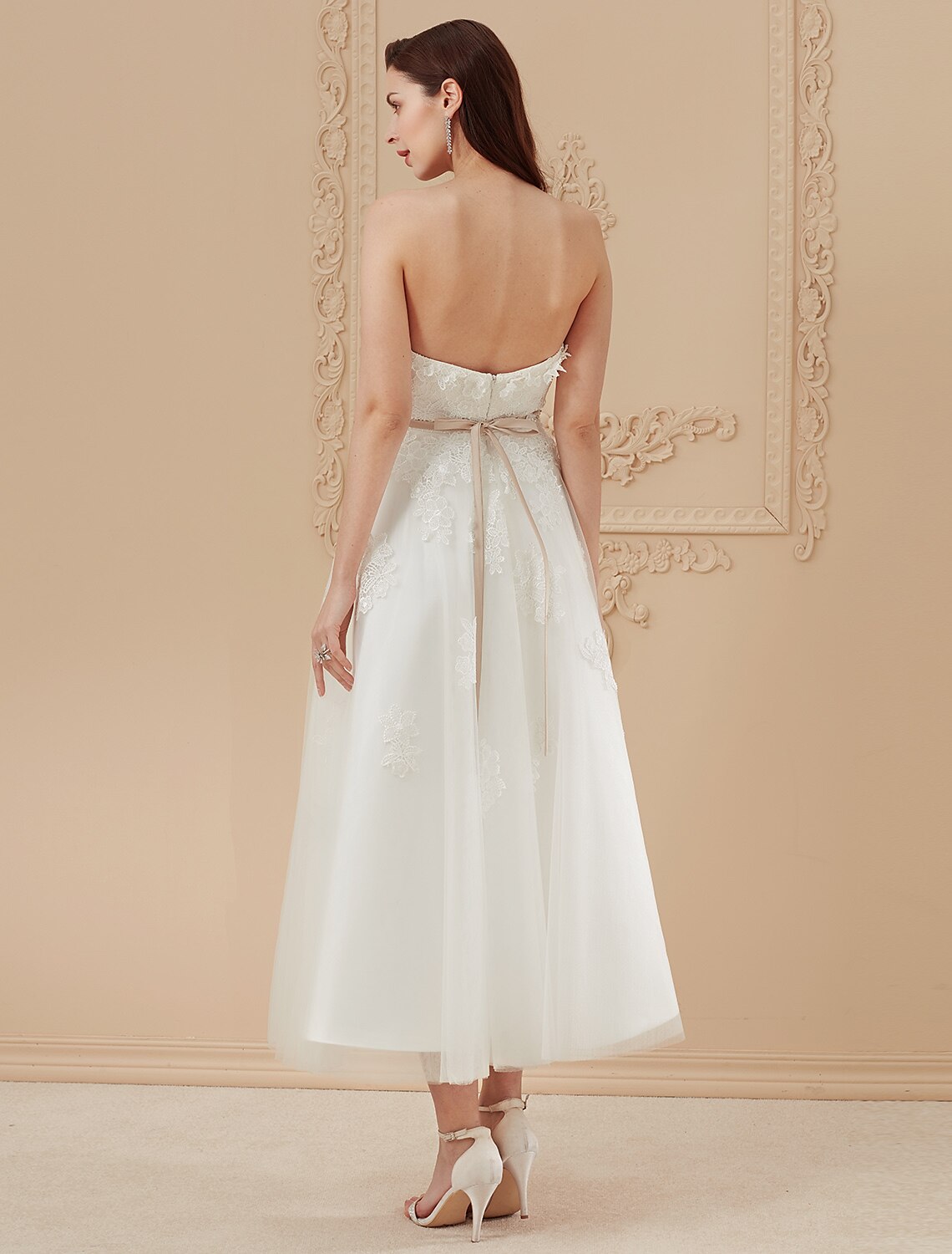 Reception Wedding Dresses A-Line Sweetheart Sleeveless Ankle Length Tulle Bridal Gowns With Sashes / Ribbons Beading - US 2 / UK 6 / EU 32