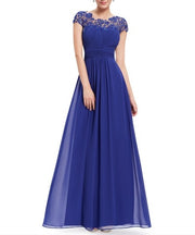 Royal Blue Chiffon Prom Dress With Illusion Lace And Keyhole Back