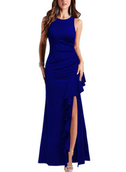 Royal Blue Women's Scoop Neck Sleeveless Split Bodycon Mermaid Prom Cocktail Long Dress - US 2 / UK 6 / EU 32
