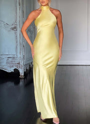 Satin Mermaid Prom Dresses Halter Evening Dress Backless Formal Party Dress Long with Slit - US 2 / UK 6 / EU 32