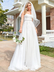 Sequin Belted Strapless Sweetheart Lace Tulle Wedding Dress