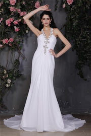 Sheath/Column Halter Sleeveless Beading Ruffles Long Chiffon Wedding Dresses - US 2 / UK 6 / EU 32