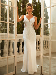 Sheath/Column Jersey Beading V-neck Sleeveless Sweep/Brush Train Dresses - US 2 / UK 6 / EU 32