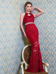 Sheath/Column Jewel Sleeveless Beading Floor-Length Lace Dresses