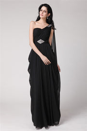 Sheath/Column One-Shoulder Sleeveless Long Beading Chiffon Dresses - US 2 / UK 6 / EU 32