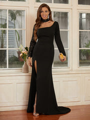 Sheath/Column Stretch Crepe Lace Square Long Sleeves Sweep/Brush Train Dresses