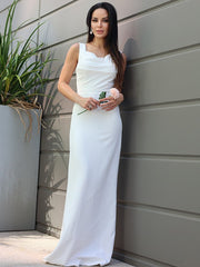 Sheath/Column Stretch Crepe Ruched Straps Sleeveless Floor-Length Wedding Dresses