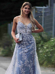 Sheath/Column Tulle Applique V-neck Sleeveless Sweep/Brush Train Dresses - US 2 / UK 6 / EU 32