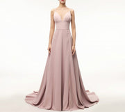 Simple Spaghetti Strap Sleeveless Prom Dress With Split And Train
