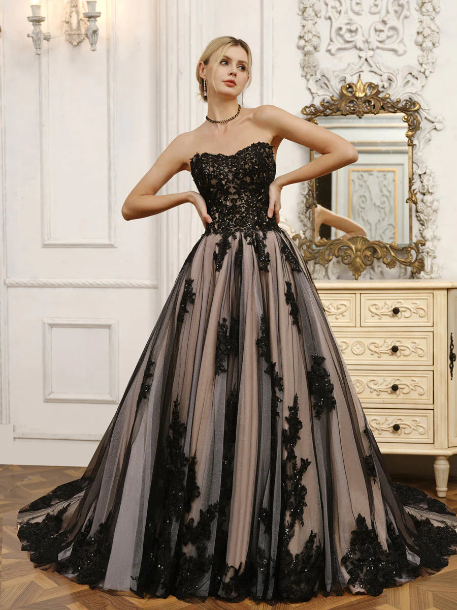 Strapless Tulle Ball Gown Wedding Dresses With Beading