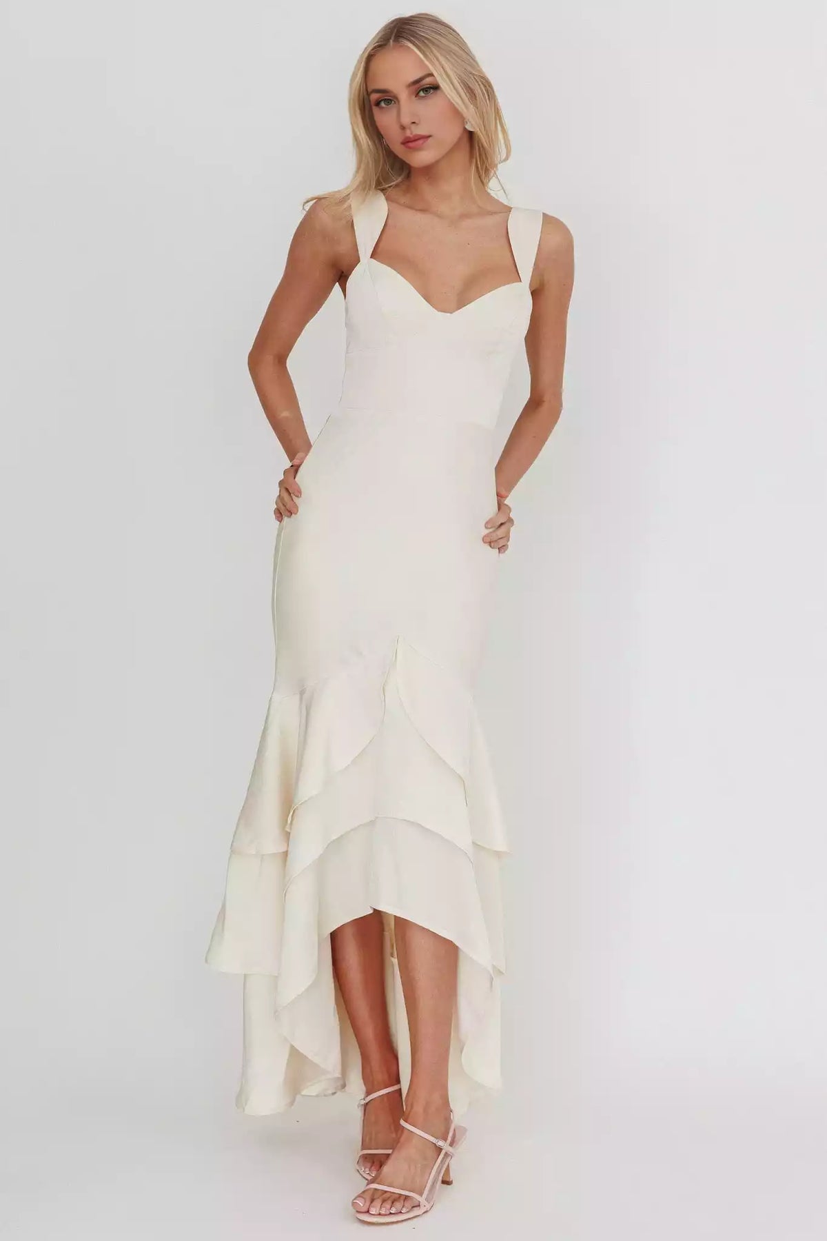 Stunning appearance with layered inner lining, ruffled hem, mermaid hem, silhouette, and side zipper Prom Dresses