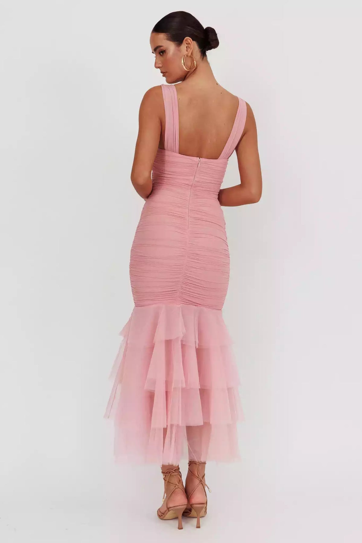 Stunning fish tail design with pleated embellishments, sheer mermaid hem, invisible back zipper Prom Dresses