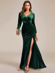 Stunning Long Sleeve V-Neck Velvet Bodycon Evening Dress