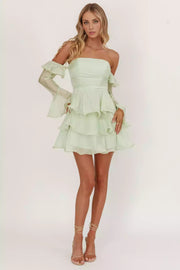 Stunning mini lining off shoulder long sleeves with layered ruffled edges and zippered back Homecoming Dresses