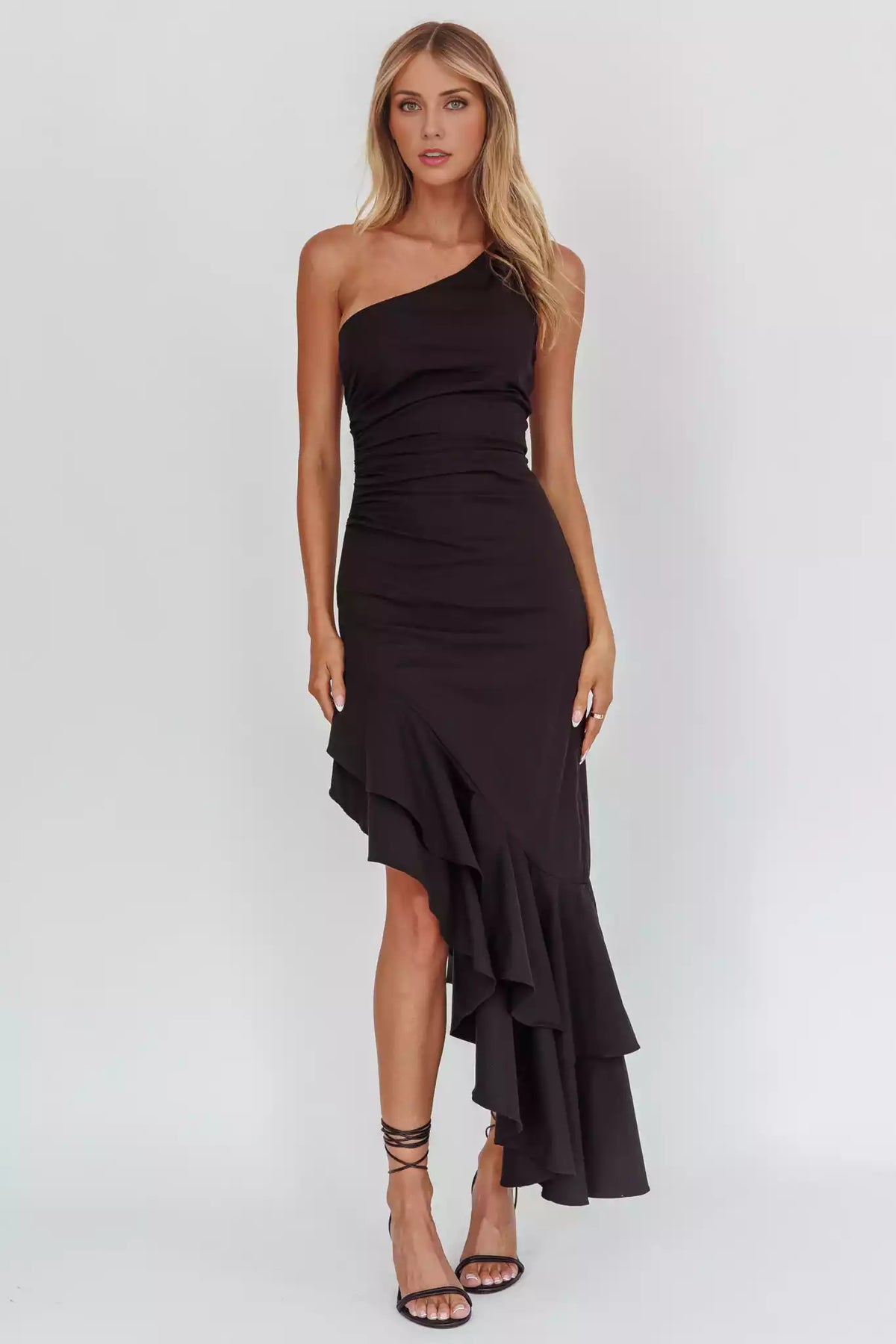 Stunning single shoulder lining with adjustable shoulder strap, asymmetrical ruffle hem, zipper on the side, Prom Dresses