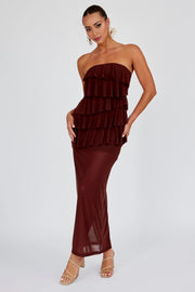 Stunning strapless mesh covering layered ruffled edges, side slits, and side zippers Homecoming Dresses