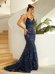Trumpet/Mermaid Lace V-neck Sleeveless Sweep/Brush Train Dresses