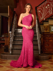 Trumpet/Mermaid One-Shoulder Sleeveless Ruffles Long Tight Prom Dresses - Hot Pink