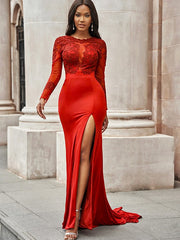 Trumpet/Mermaid Spandex Applique Scoop Long Sleeves Sweep/Brush Train Dresses