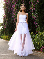 Trumpet/Mermaid Sweetheart Applique Sleeveless Long Tulle Wedding Dresses